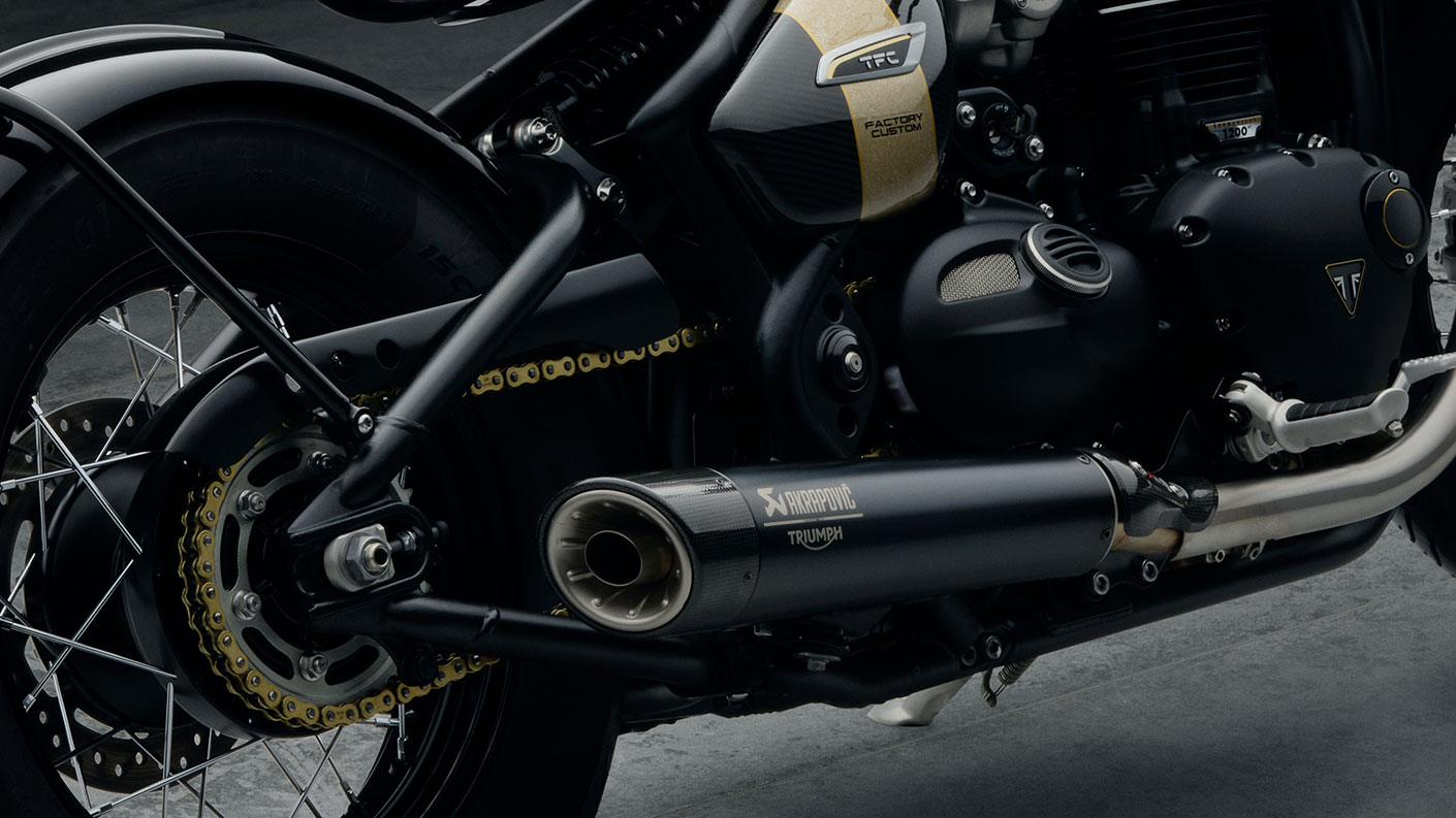 The New Bonneville Bobber TFC carries the Triumph Factory Custom legacy forward; the purest expression of custom Bobber attitude, reimagined with a distinct look and fresh details that introduce a new expression of the Bobber’s iconic character and a striking, modern aesthetic that is both timeless and entirely new.