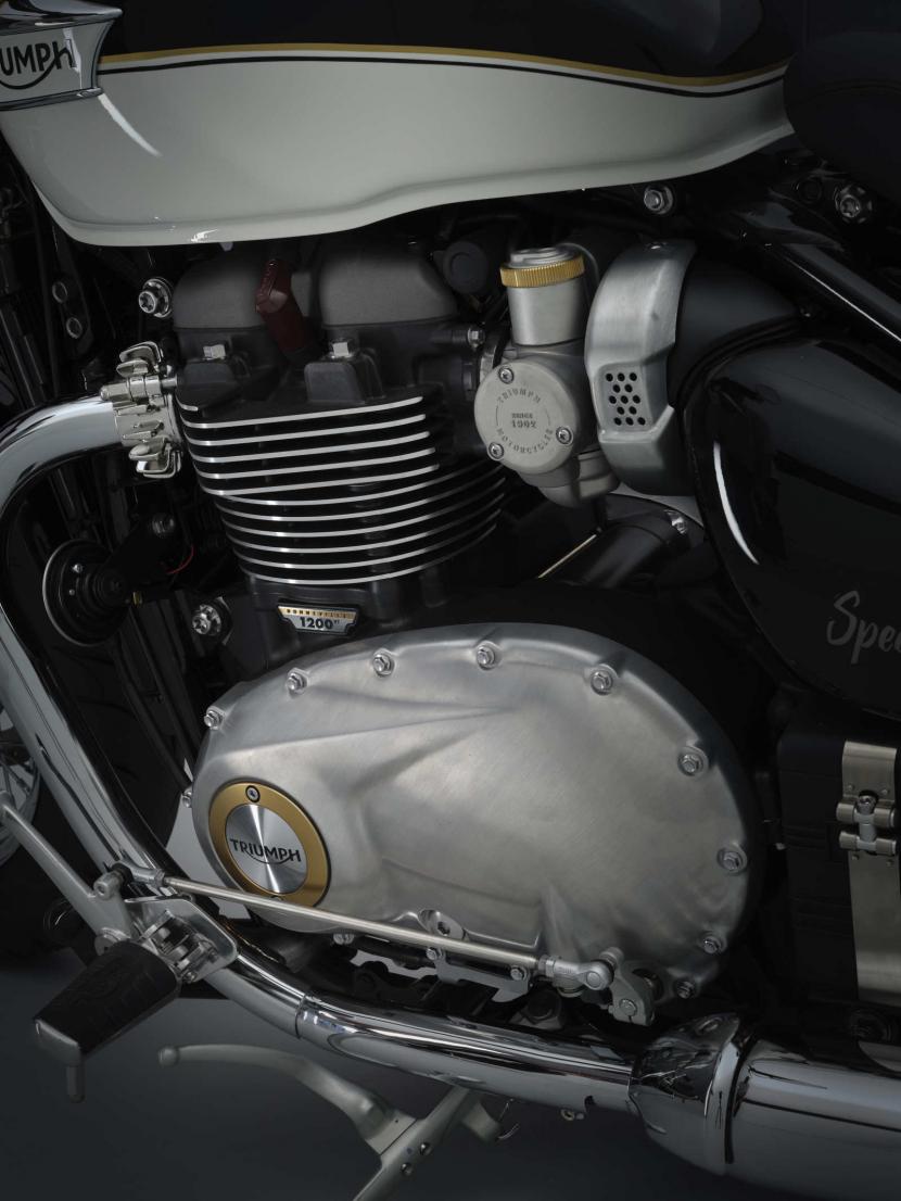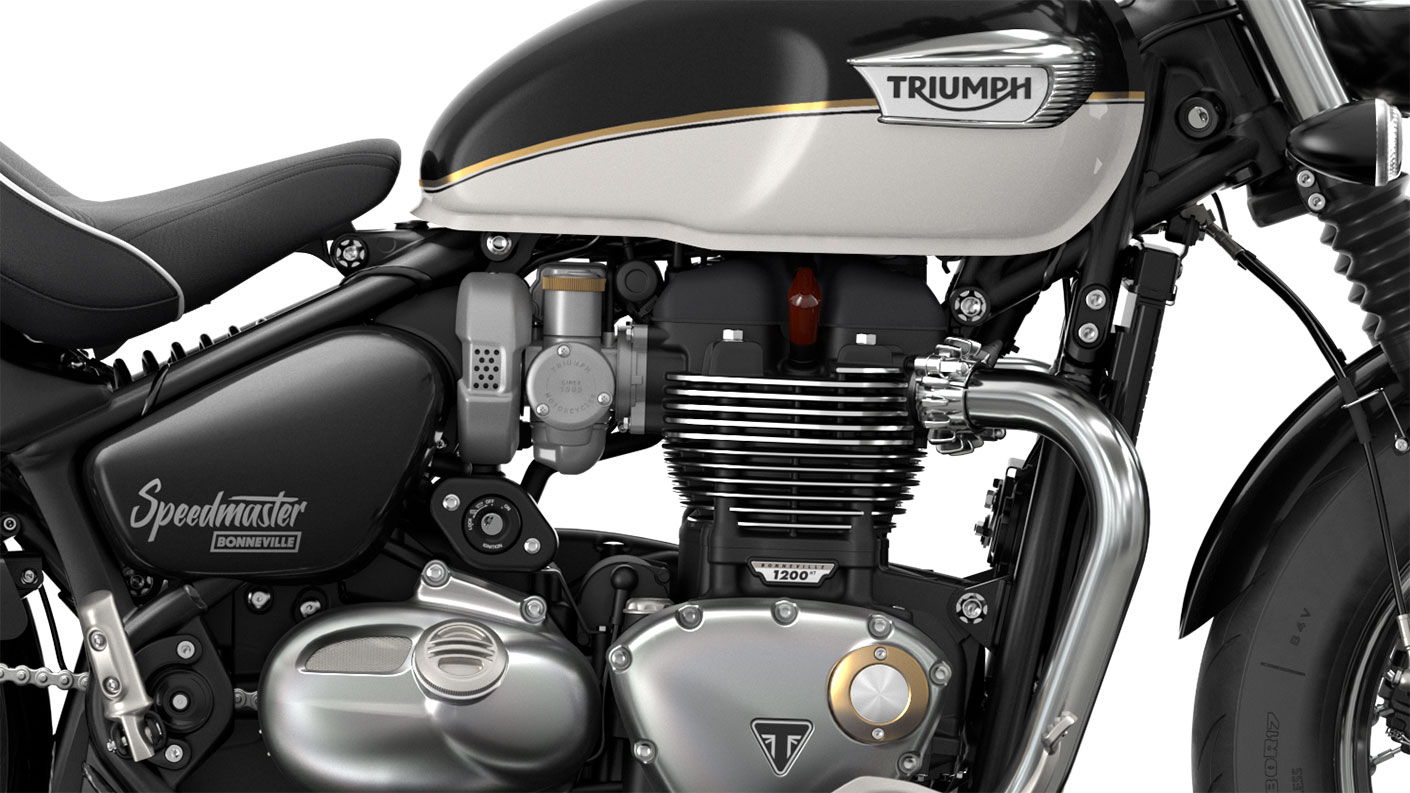 An innovative twin airbox setup and unique twin-skin, bright chrome exhaust system deliver the Speedmaster’s rich, deep and distinctive sound, neatly hiding the catalyst under the bike.