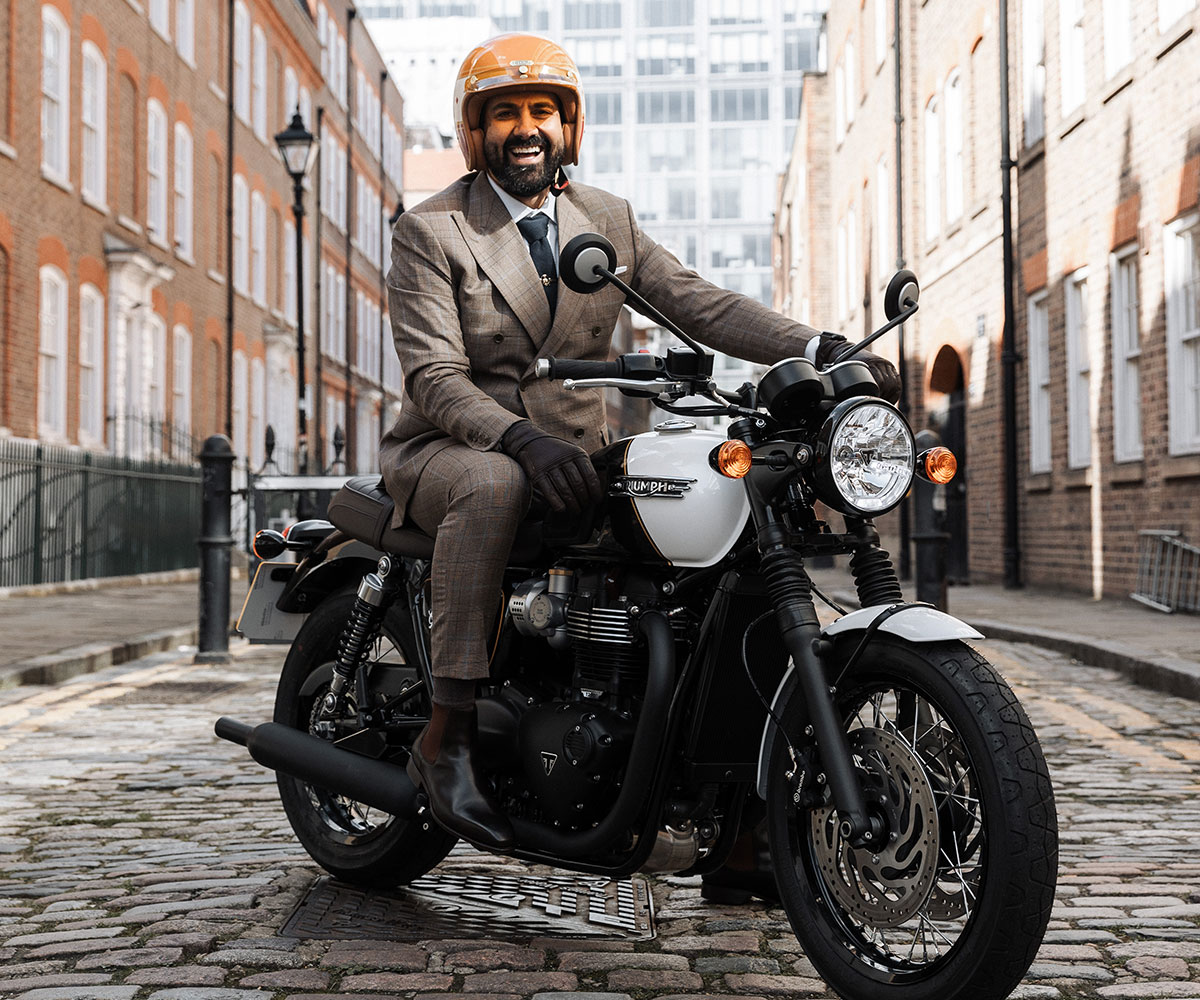 The beautiful, sophisticated monochrome metallic Phantom Black and Crystal White two-tone paint scheme follows a distinctive 'dress suit' inspired design, drawing inspiration from the Distinguished Gentleman's Ride's dress code.