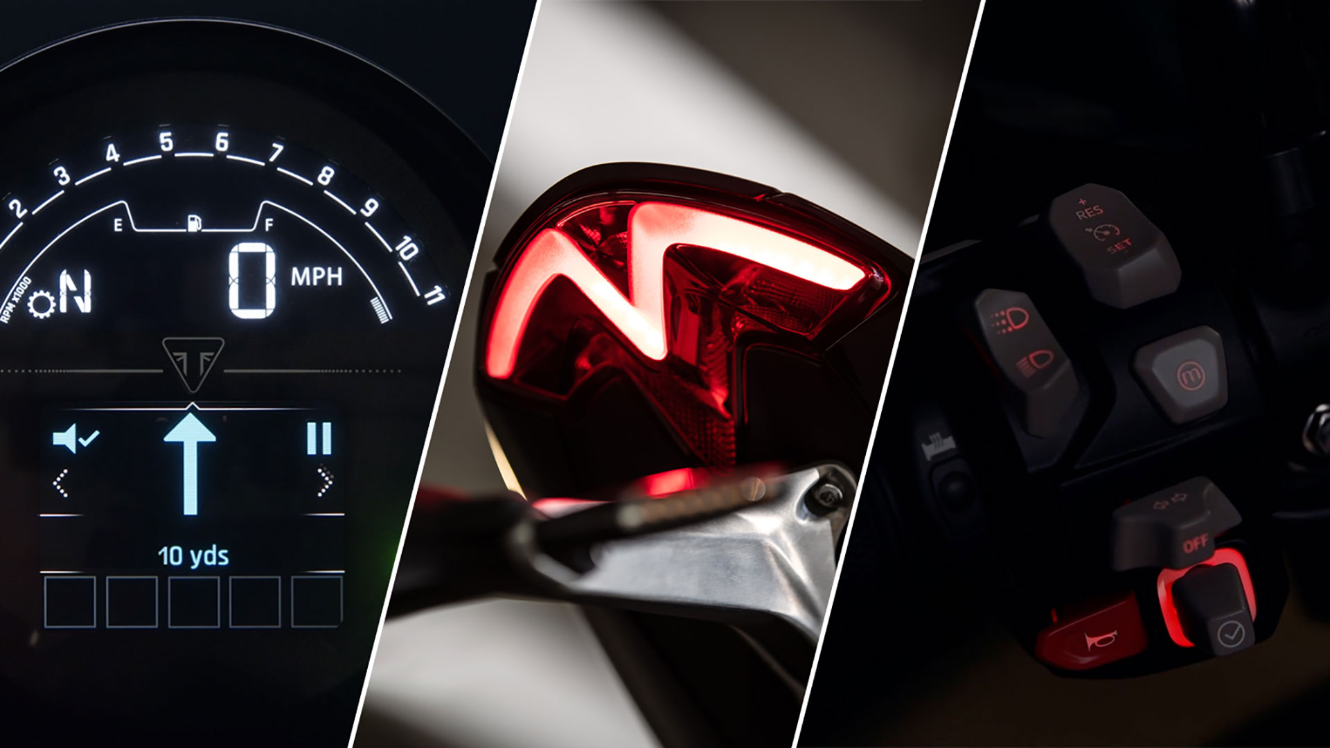 Triumph applies sophisticated electronic management systems and riding aids across all models, including features such as advanced traction control, switchable rider modes and multi-channel ABS, all to further enhance the ride and bring the benefits of increased safety and control.
