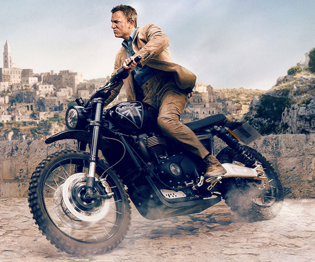 The partnership has since included two Limited Bond Edition motorcycles, and Triumph’s first step into the world of digital collectables. The latest collaboration forms part of the 60 Years of Bond celebrations. Christie’s Auction House is holding an exclusive 60 year celebration Bond auction and Triumph are proud to announce that the Scrambler 1200, featured in the film No Time To Die, will be one of the exclusive lots available at the live auction